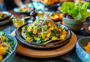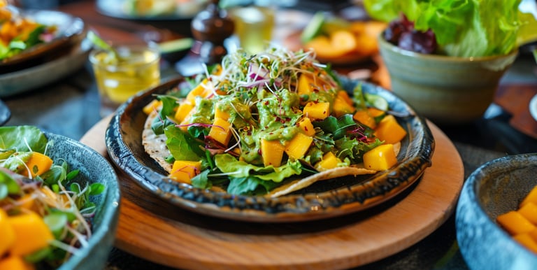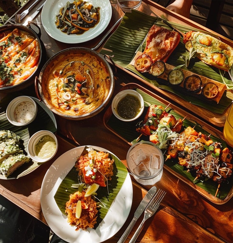 Ofrecemos una cocina inspirada en Francia con productos frescos locales. El desayuno está incluido y las cenas a la carta se disfrutan con una vista espectacular del atardecer.