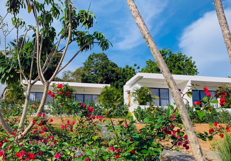Nuestras habitaciones combinan confort moderno con encanto francés. Cuentan con ropa de cama premium, aire acondicionado y vistas al mar o a la naturaleza para una estancia placentera.